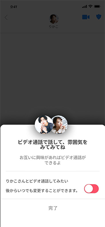 Tinderのビデオ通話機能は、制御のしやすさや使い心地を第一に考えて開発されました。この機能を使えば、相手に連絡先を渡すことなくオンラインで顔を合わせ、マッチ相手が本物であることを確認し、オフラインで対面する前に相手と気が合うかどうかを確かめることできます。